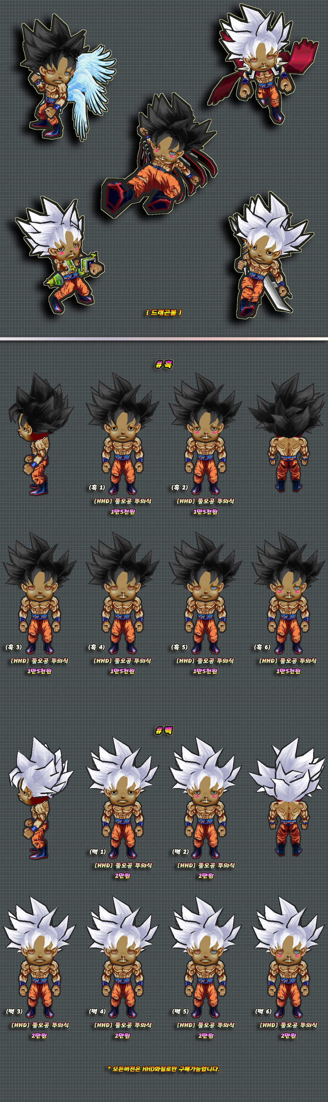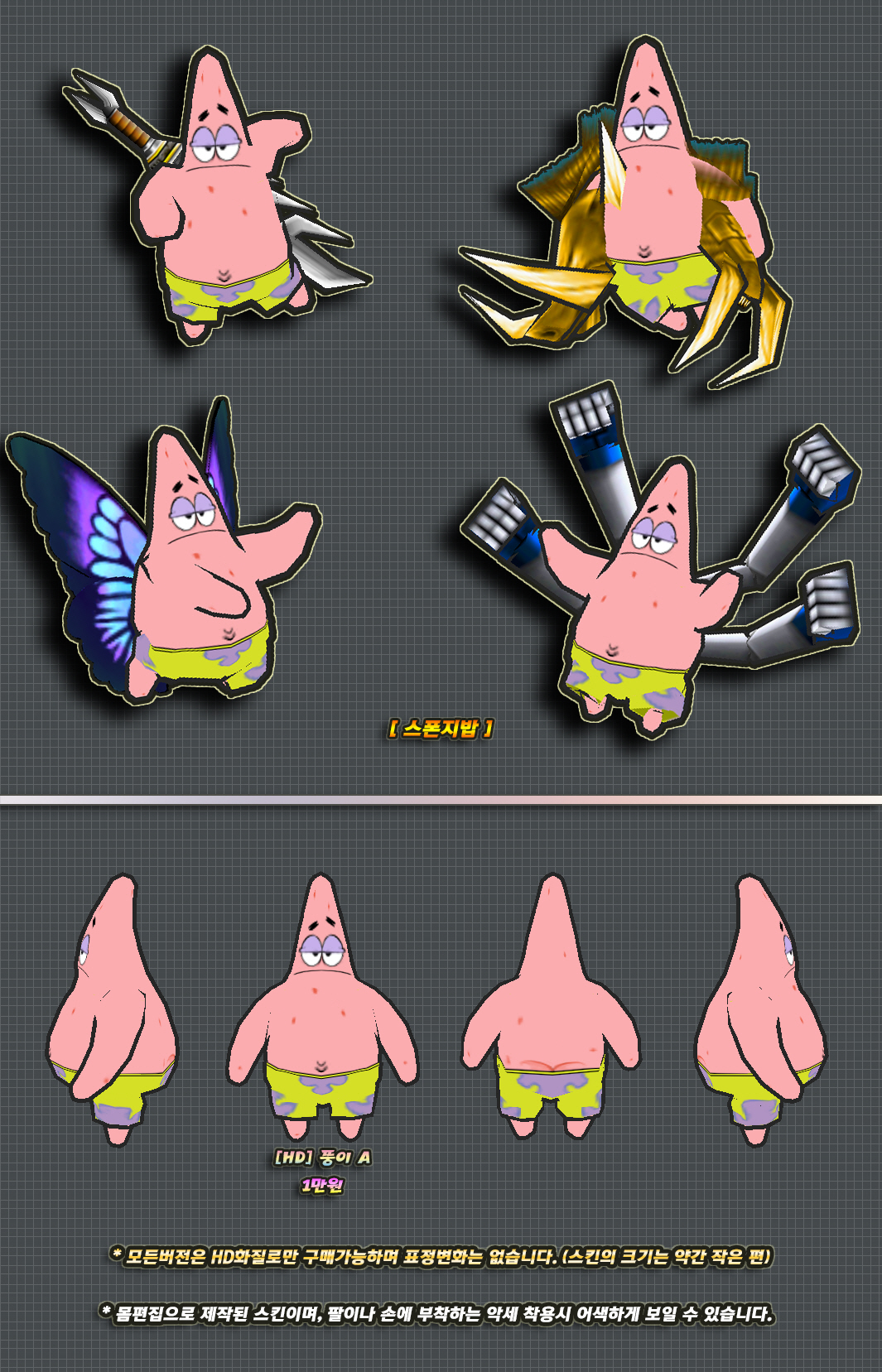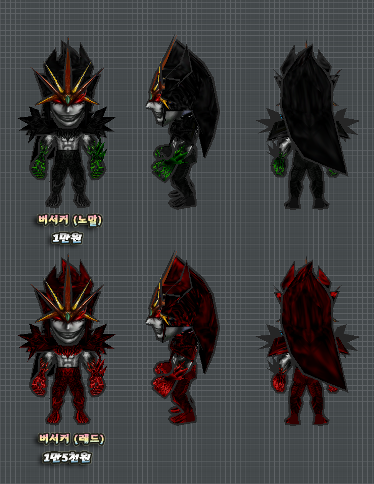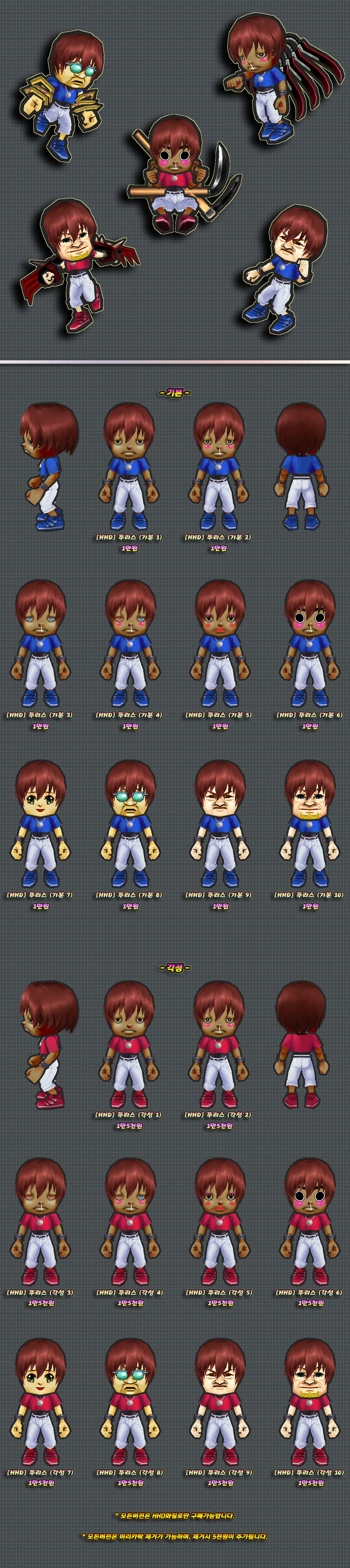 위 2개버전의 몸에는 머리픽스로 제작된 부분이 있습니다