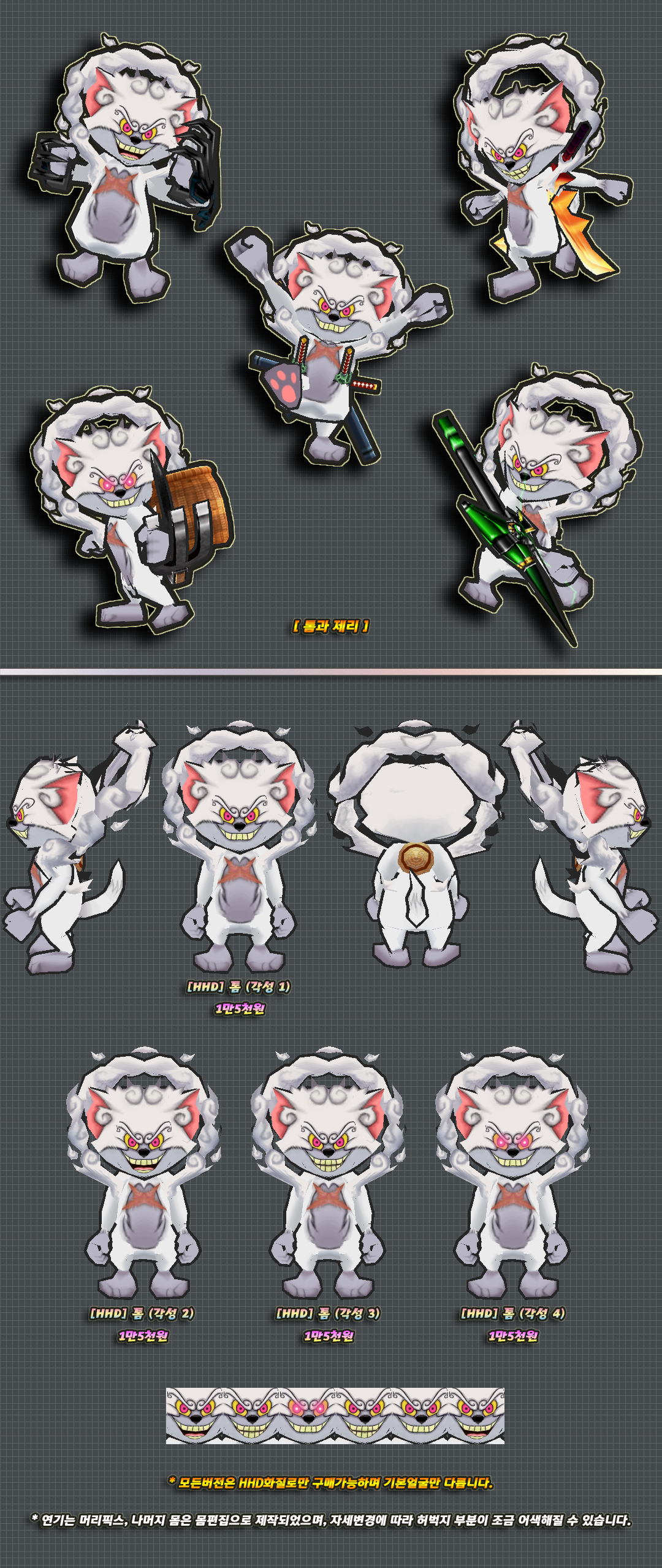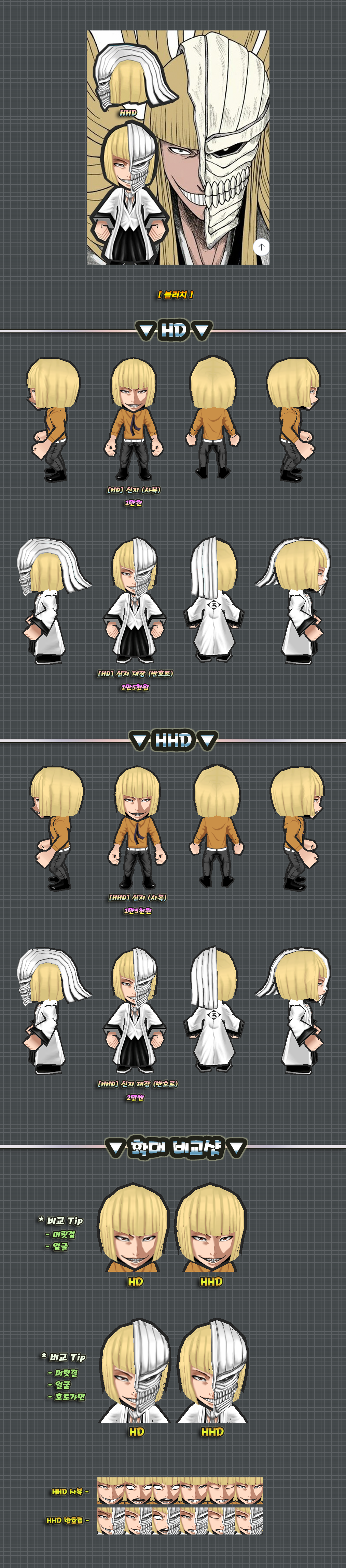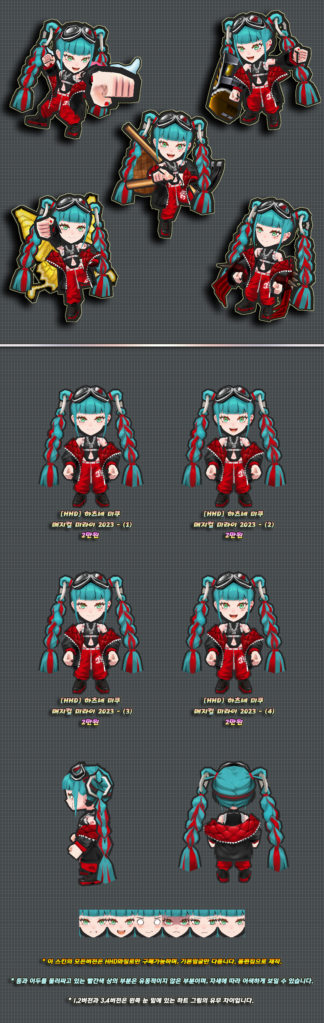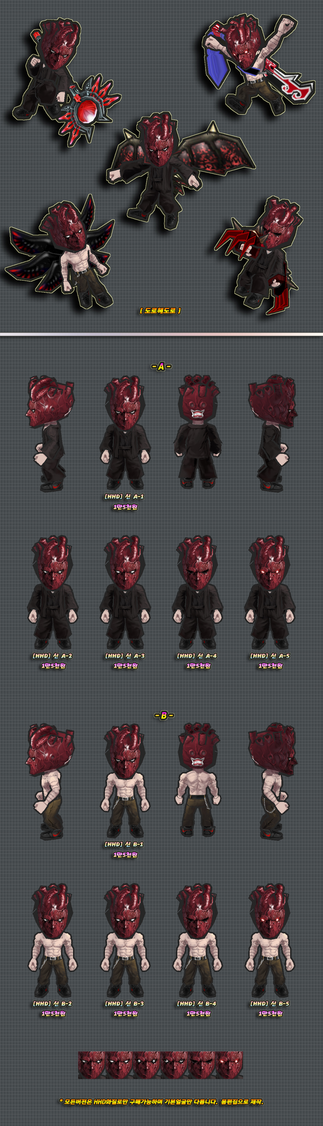 위 2개버전의 몸에는 머리픽스로 제작된 부분이 있습니다