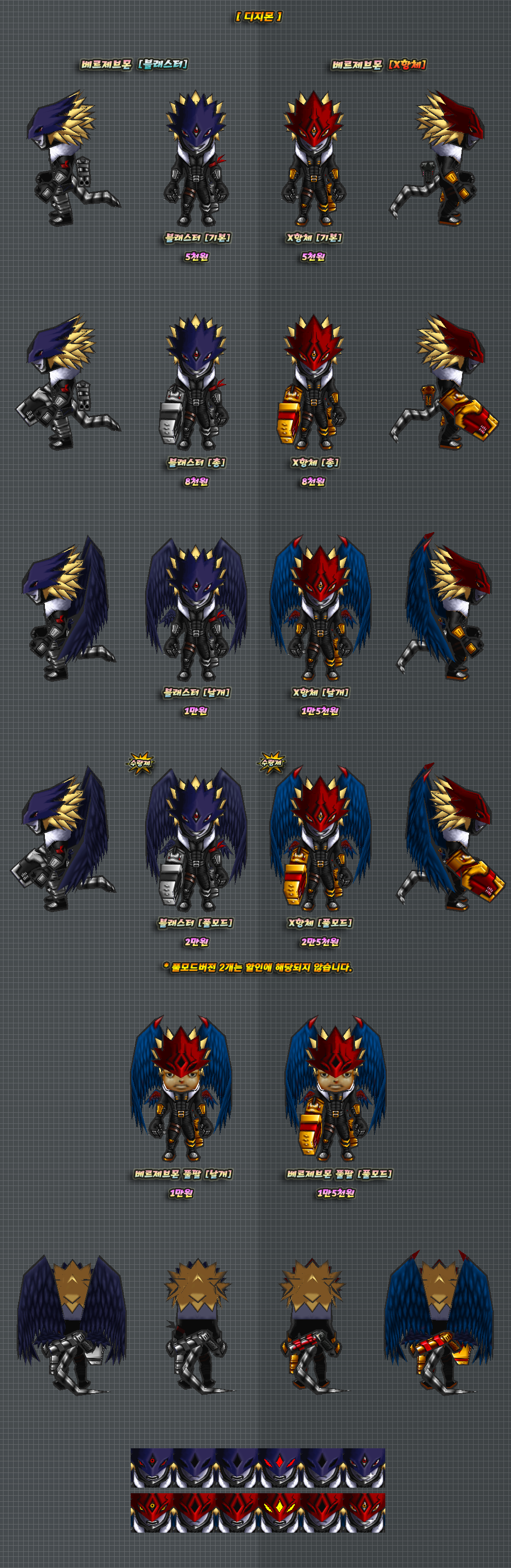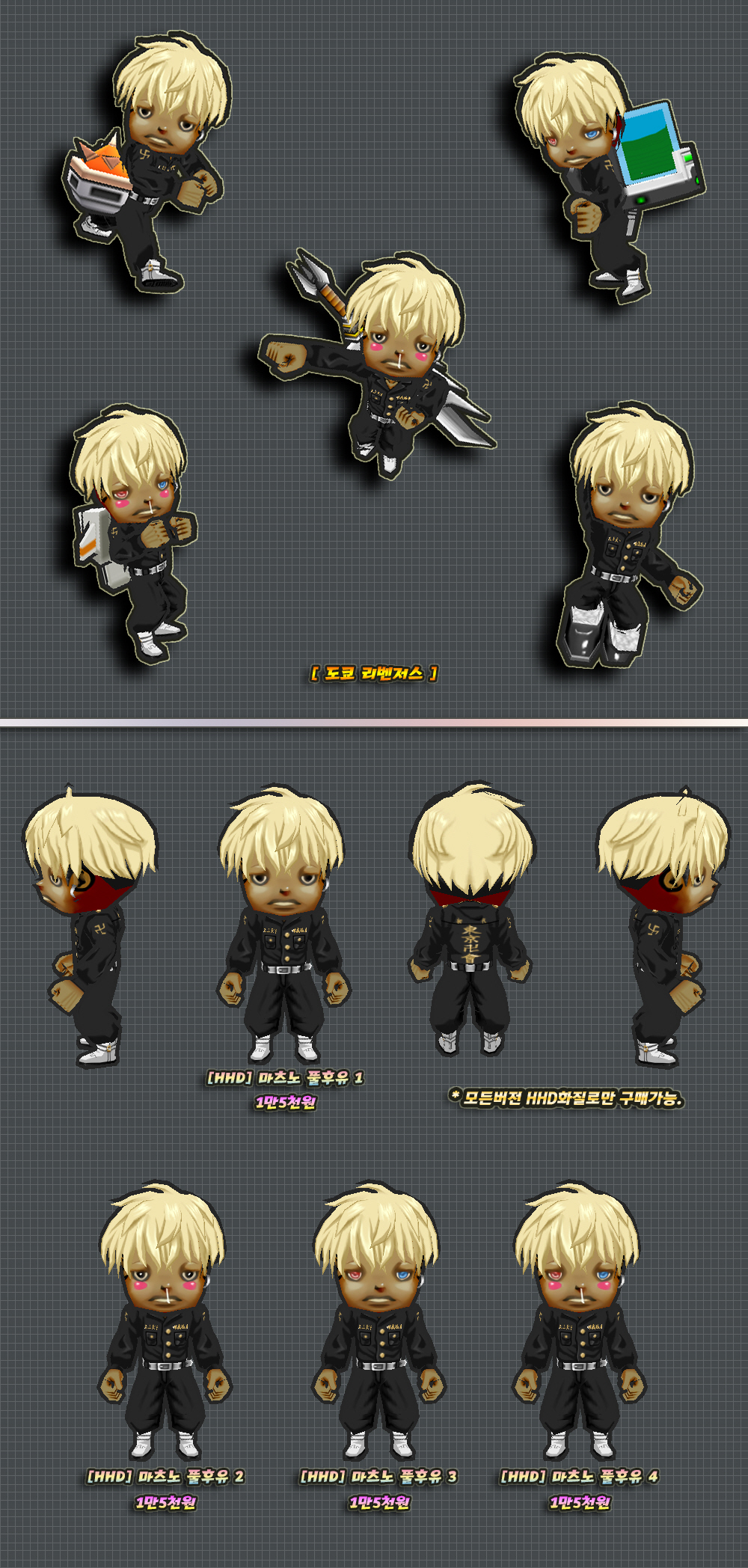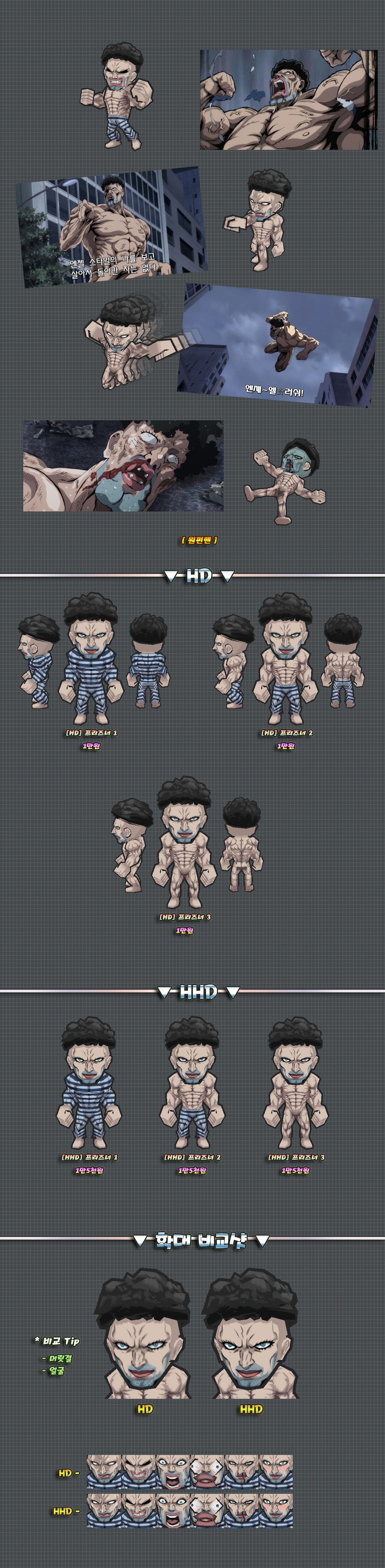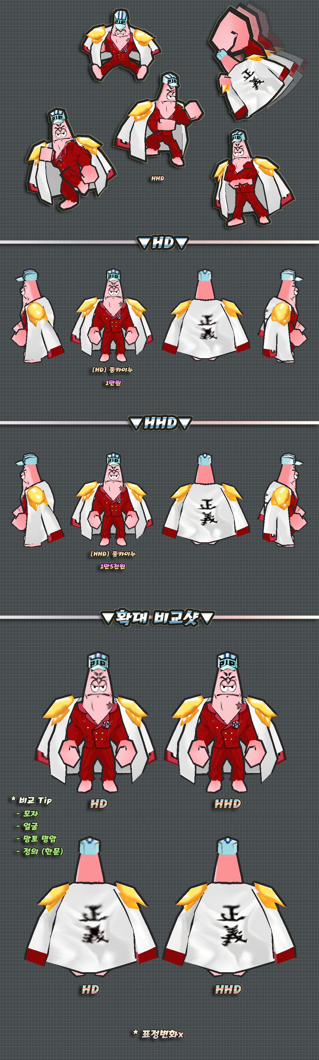 위 2개버전의 몸에는 머리픽스로 제작된 부분이 있습니다