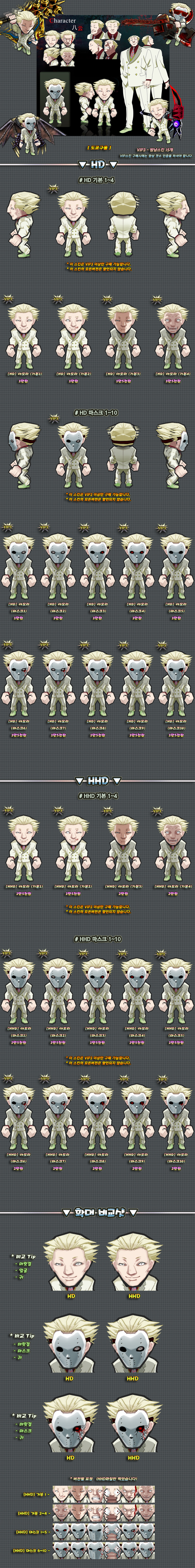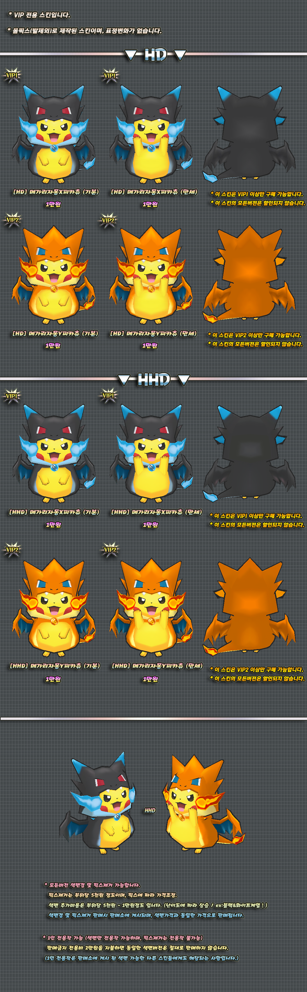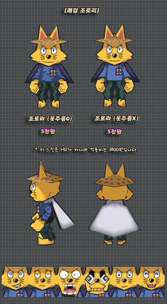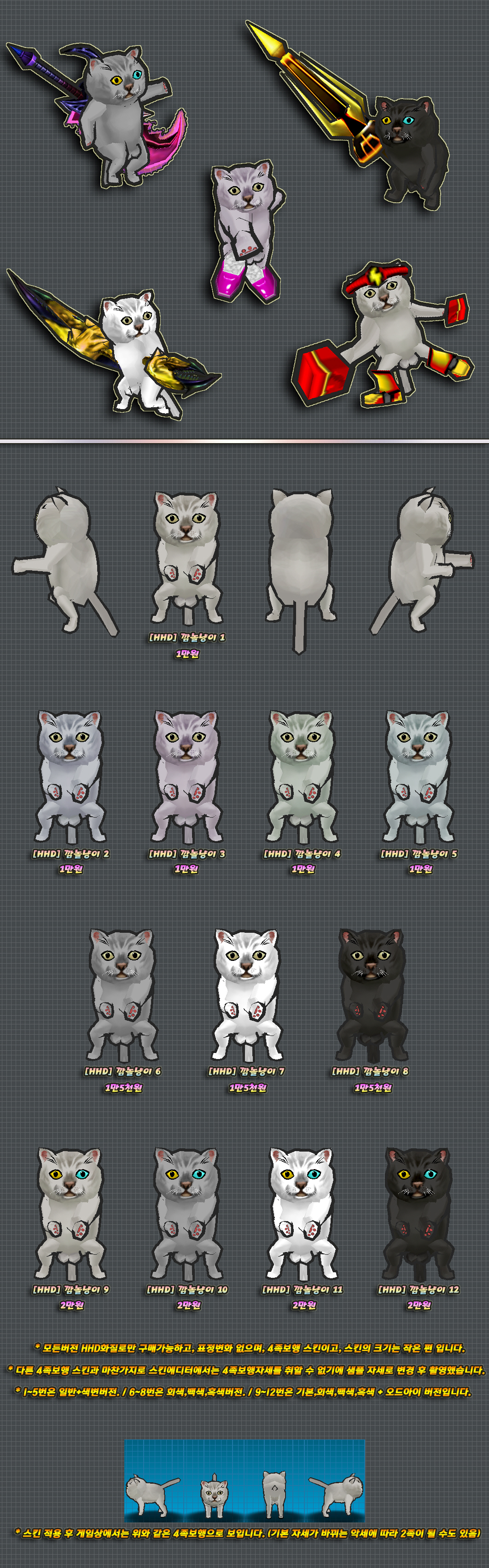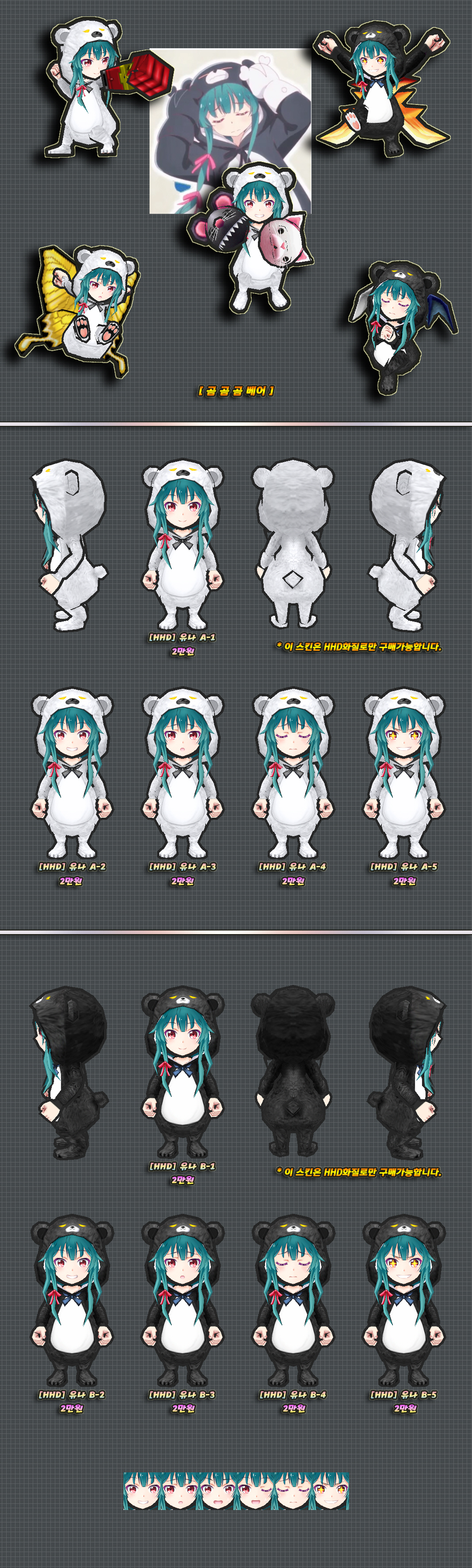 이 스킨의 하의 천부분은 머리픽스로 제작된 부분이며 자세변경시 위치가 어색해질 수 있습니다.