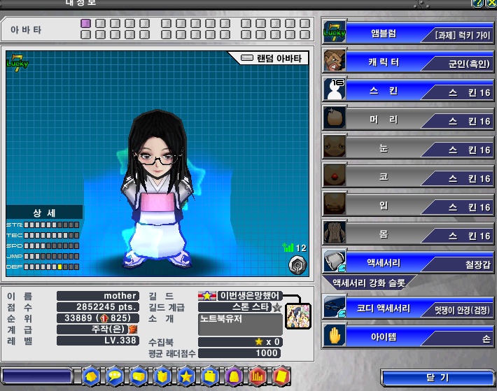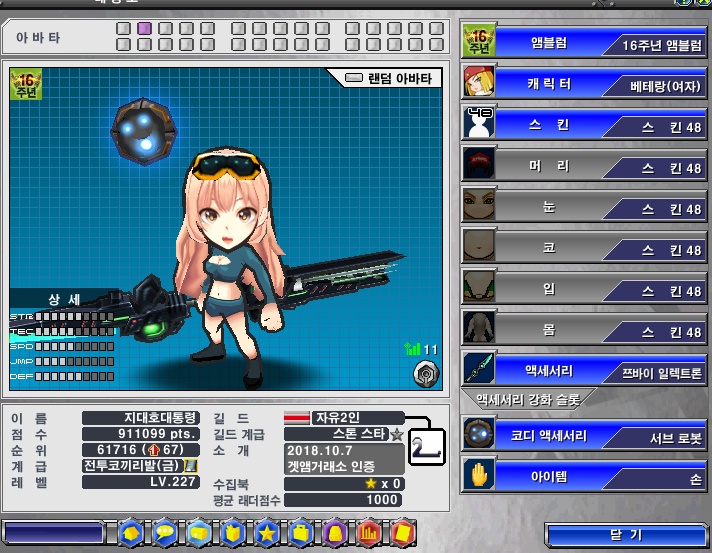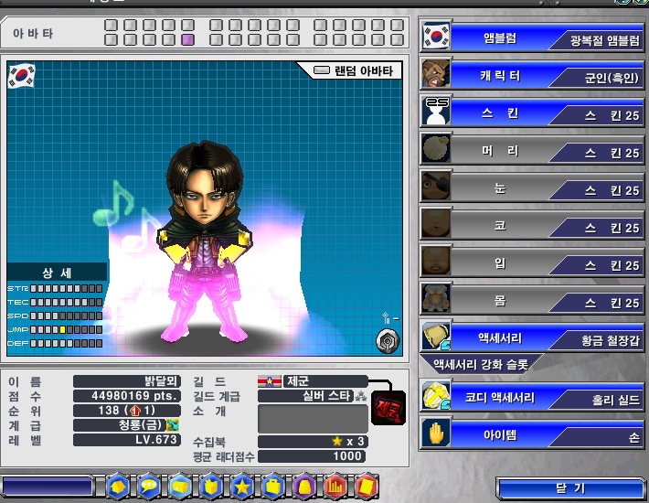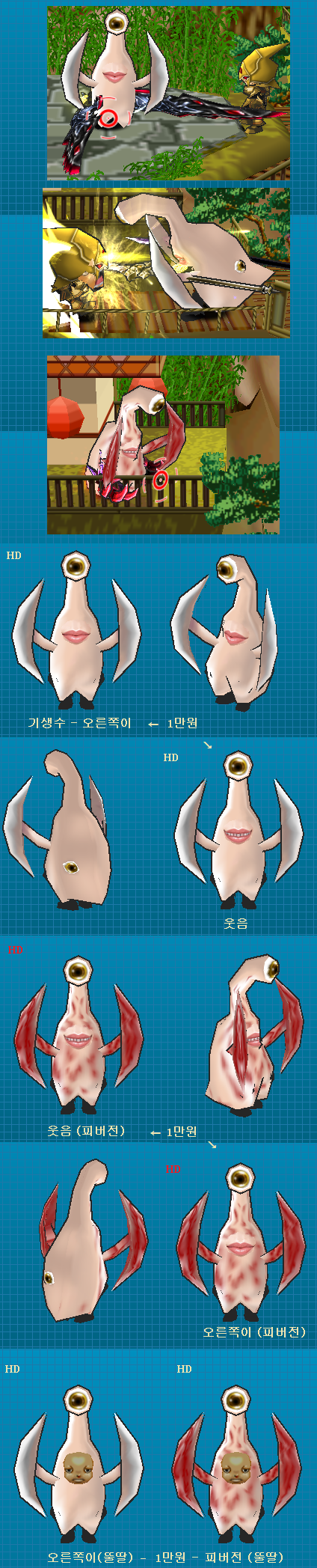 * 게임내에서 바닥의 픽스가 깜빡거리는 효과가 있습니다. (캐릭의 자세변경에 따라 깜빡거리지 않을 수 있음)