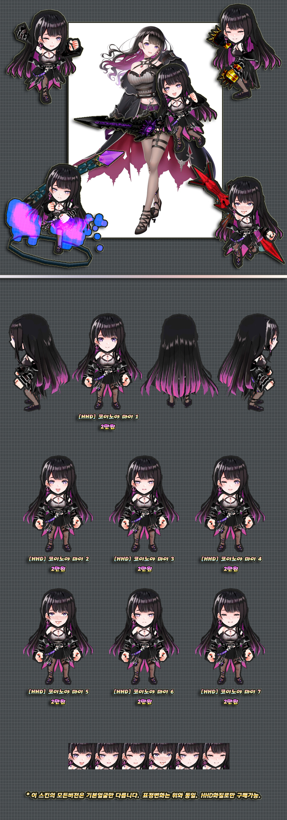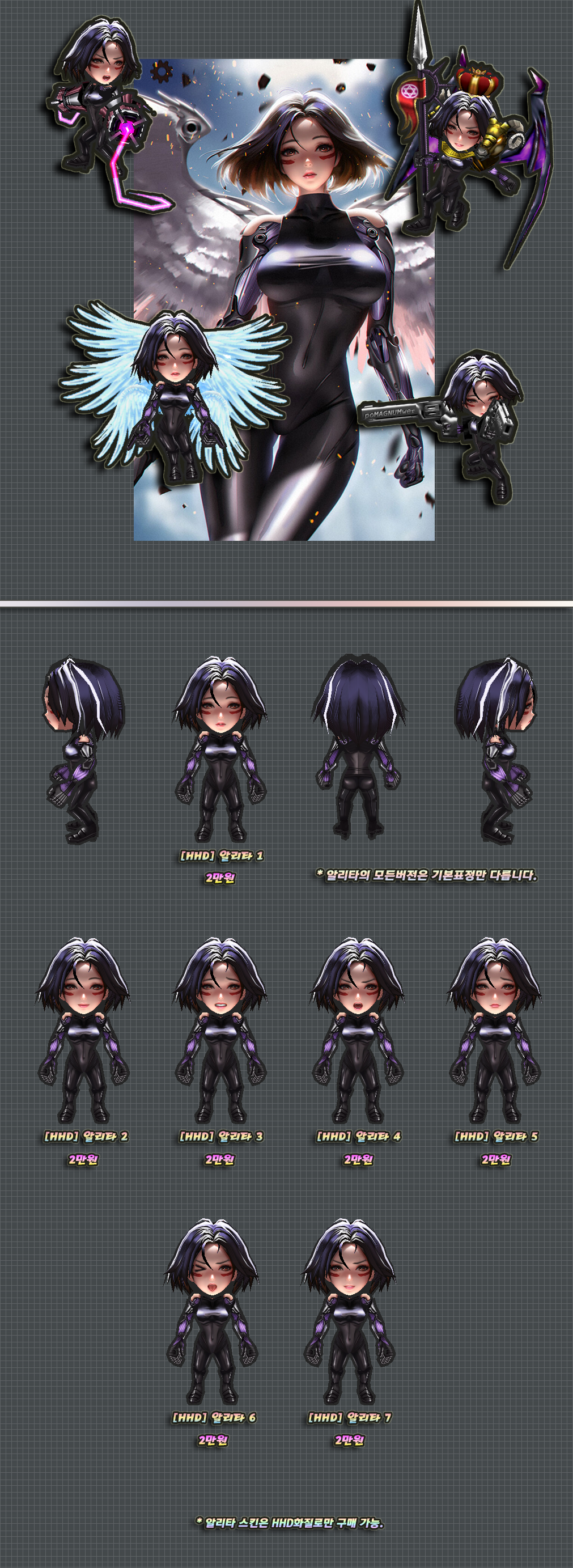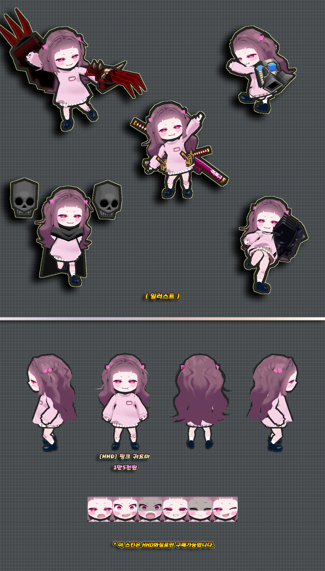스킨은 상단과 같으며 아래의 악세는 미포함입니다.