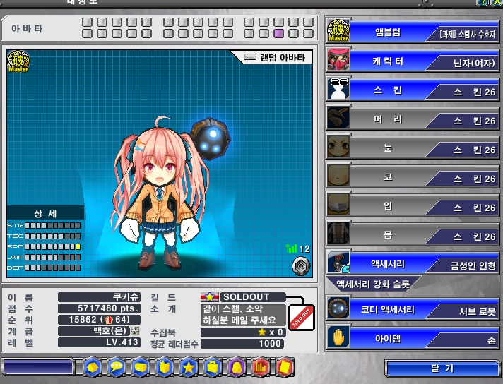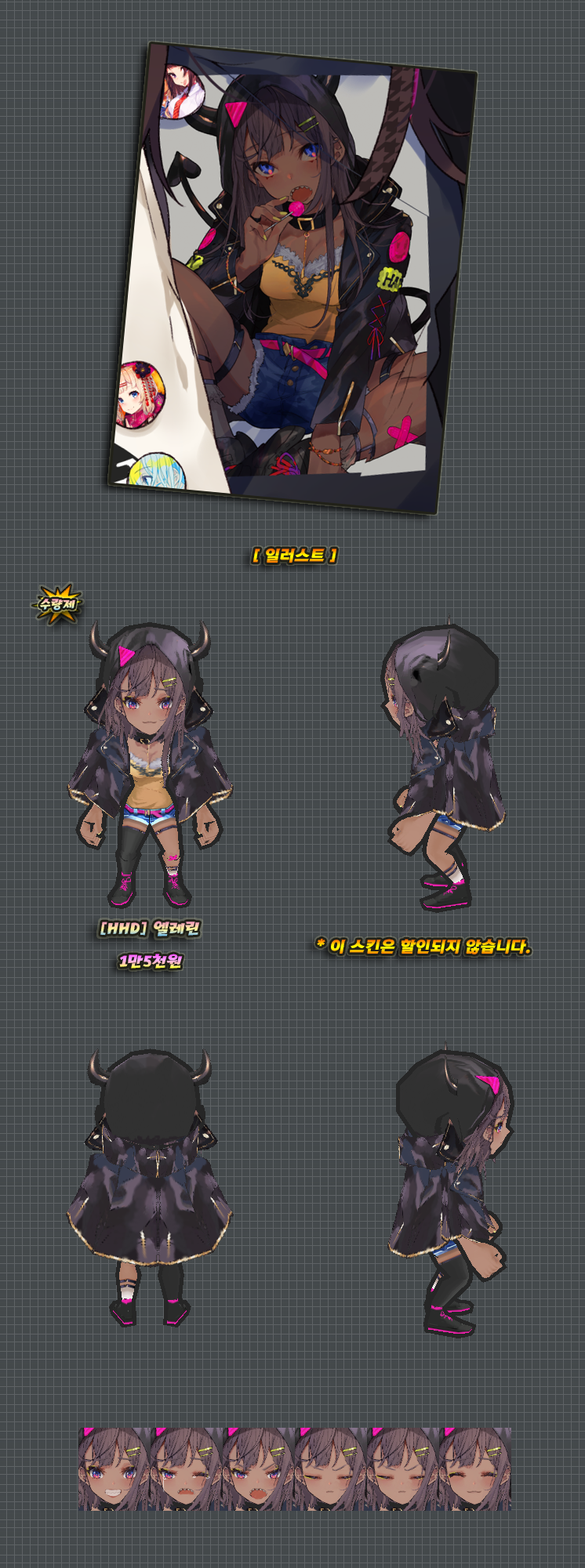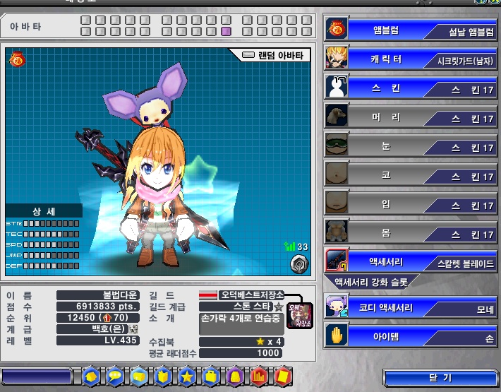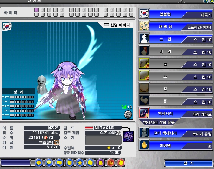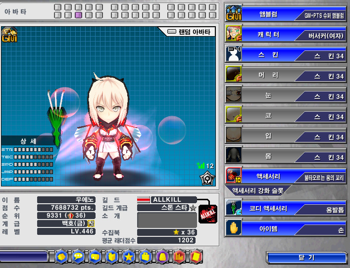 스킨은 상단과 같으며 아래의 악세는 미포함입니다.