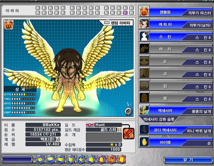 다리를 제외한 모든부분 머리픽스입니다.