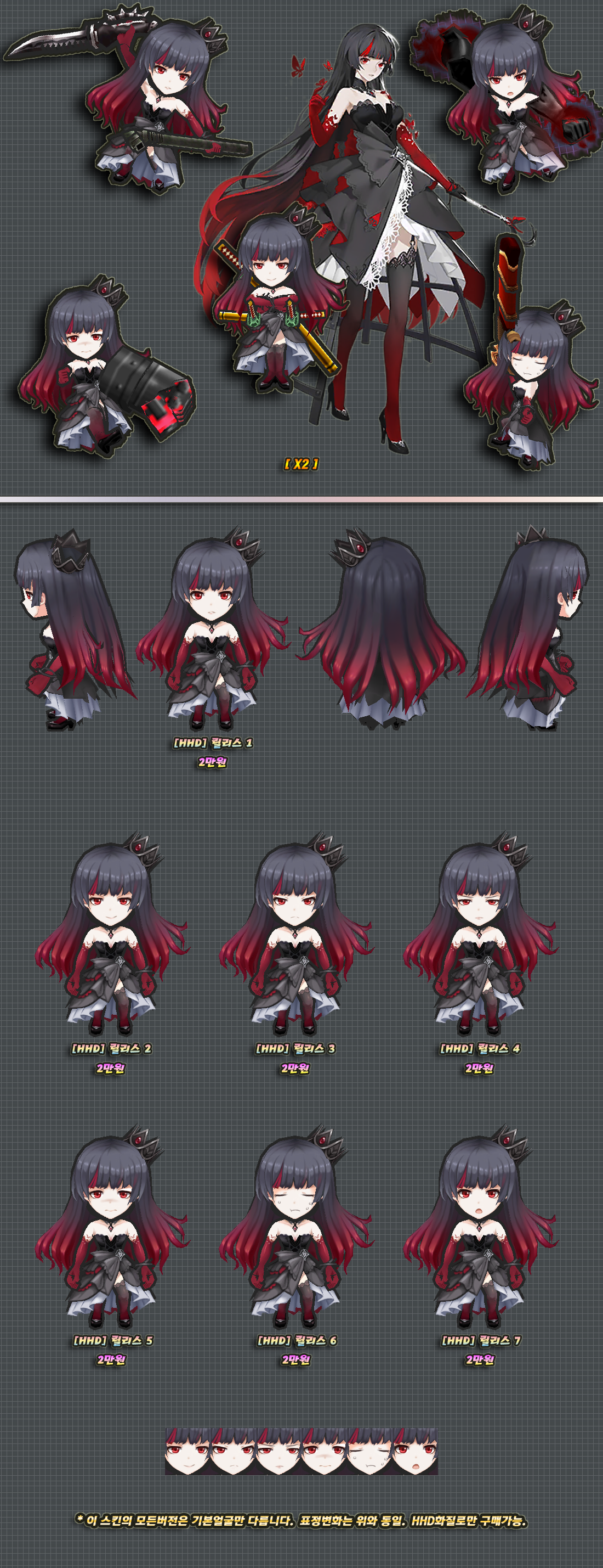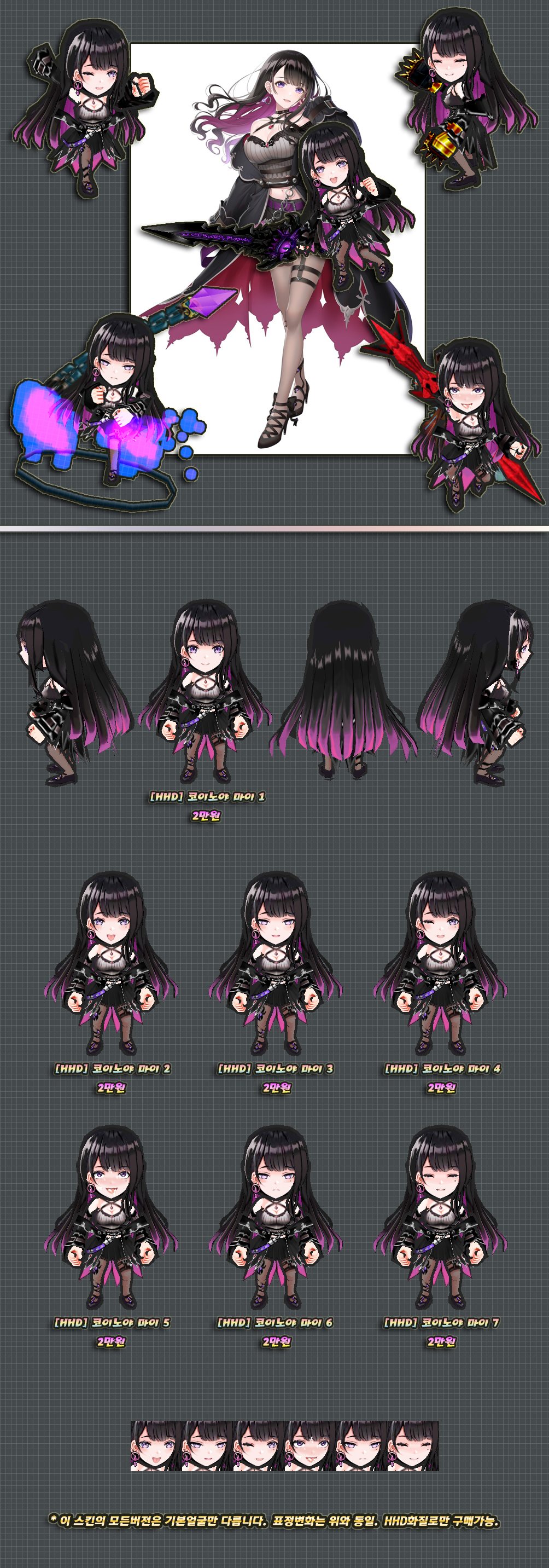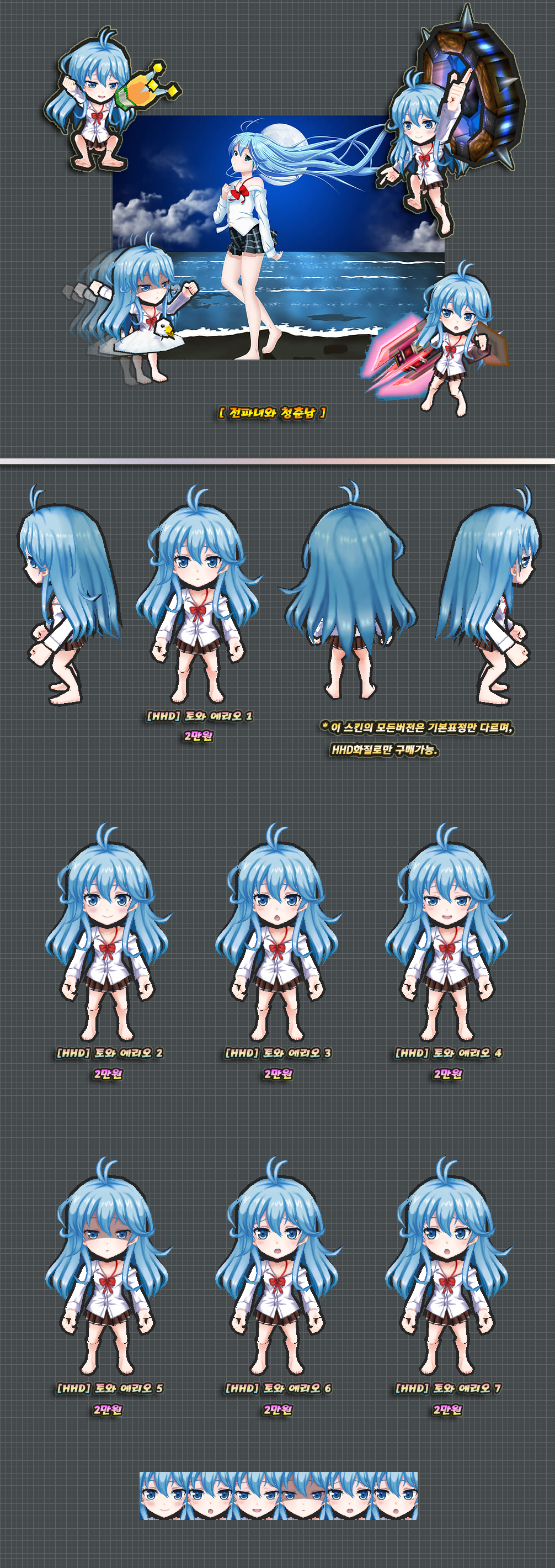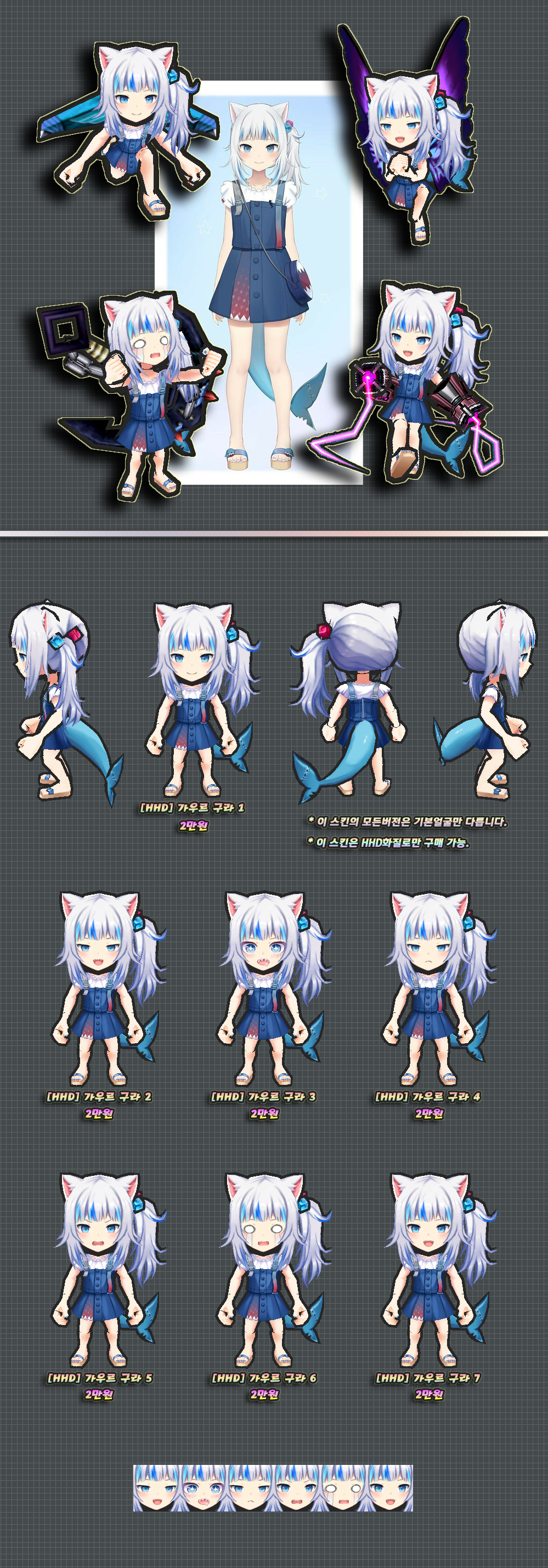 위 스킨은 HHD화질로만 구매가능하며, 판매소내의 HHD로만 게시되었지만 화질선택의 언급이 없는 다른 스킨들도 HHD화질로만 구매 가능합니다.