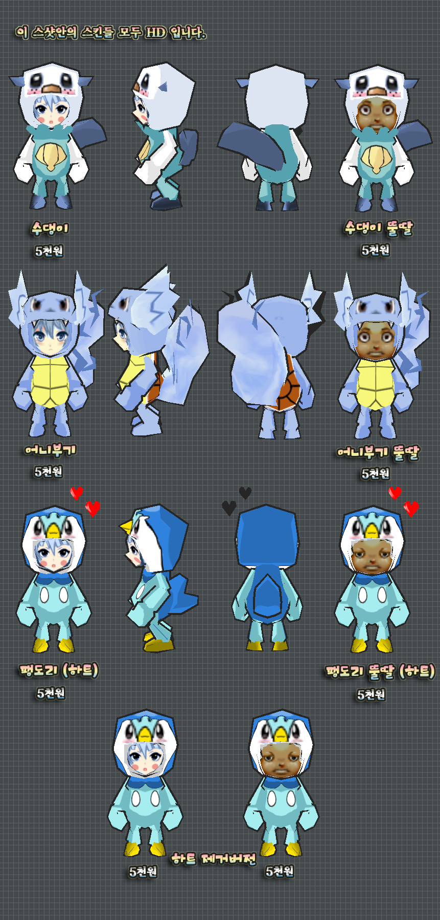 얼굴을 제외한 모든부분이 머리픽스입니다