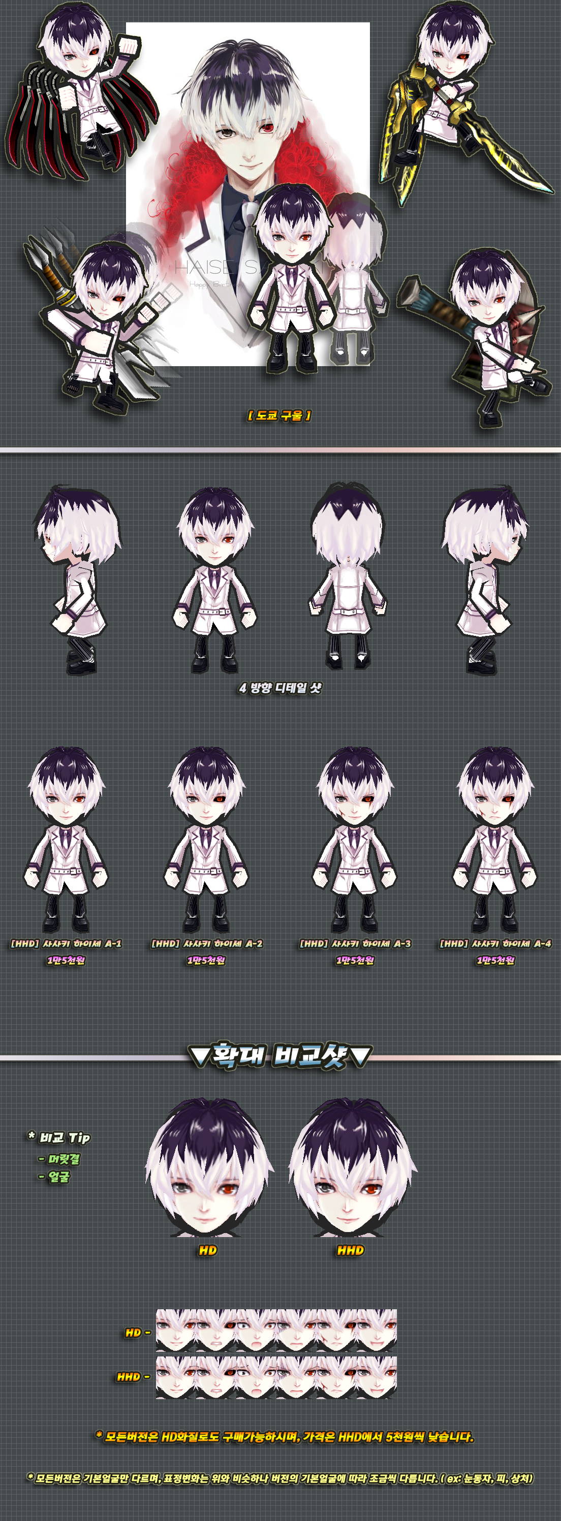 다리를 제외한 모든부분 머리픽스입니다.